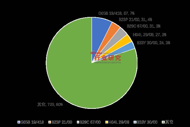 智能制造领域历史专利申请数量为905个,按国际专利分类号,智能制造领域专利前五大专利类型分布及占比如下图所示。