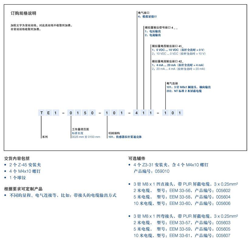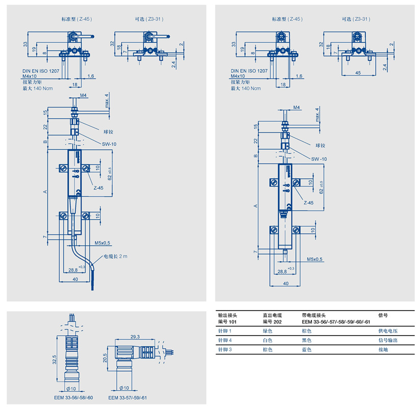 传感器外壳设计坚固、紧凑,尤其是拉杆两端由金属柔性